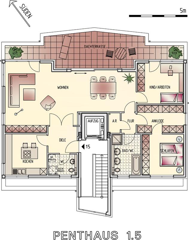 bzw. Terrasse. Die Penthouses bieten attraktiven Lebensraum und viel individuelle