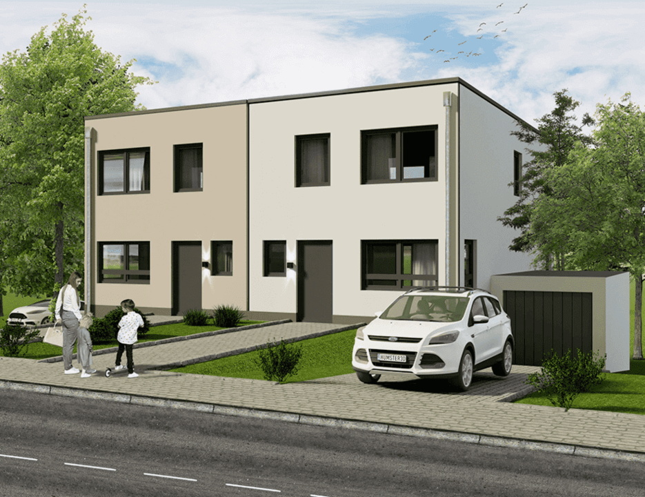 In dem neuen Wohngebiet werden auf einer Teilfläche von ca. 2180 m² sechs hochwertige Neubau-Doppelhaushälften in massiver Bauweise schlüsselfertig durch uns errichtet. Die Häuser sind familienfreundlich zugeschnitten, große Fensterflächen sorgen für eine optimale