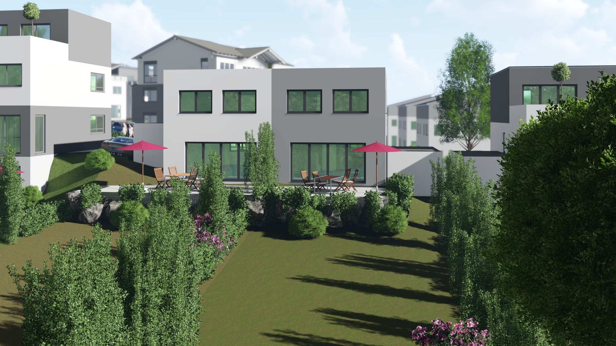 Die individuelle Planung und Ausführung der Bebauung der Grundstücke mit insgesamt 6 Doppelhaushälften erfolgt durch die Frey-Bau Gesellschaft für innovatives Bauen mbH als Bauträger mit Sitz in Ennepetal.